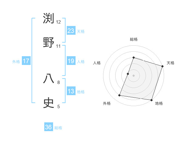 渕野 八史さんの天格は23画の5点!