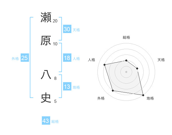 瀬原 八史さんを姓名の画数から五運を鑑定