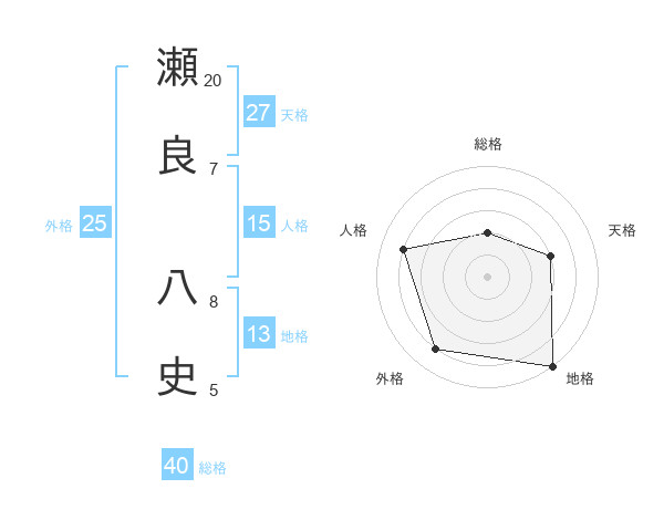 瀬良 八史さんを姓名の画数から五運を鑑定
