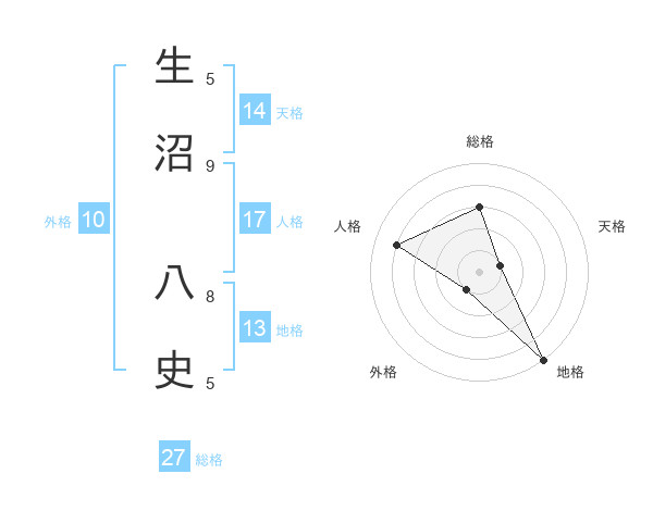 生沼 八史さんの天格は14画の1点!