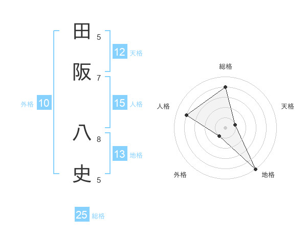 田阪 八史さんの天格は12画の1点!