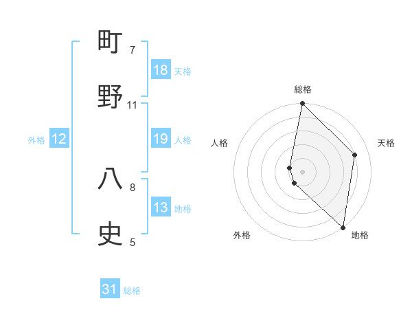 町野 八史さんの総格は31画の5点!