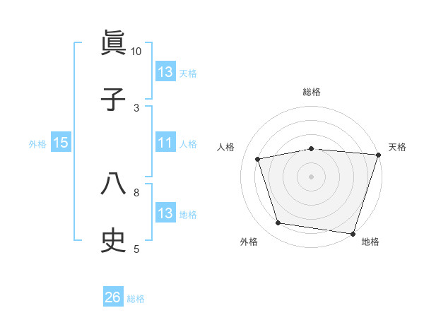 眞子 八史さんの天格は13画の5点!