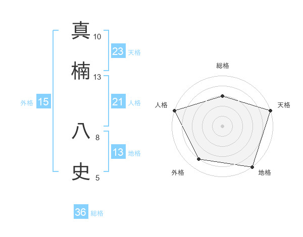 真楠 八史さんの天格は23画の5点!