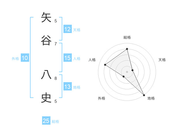 矢谷 八史さんを姓名の画数から五運を鑑定