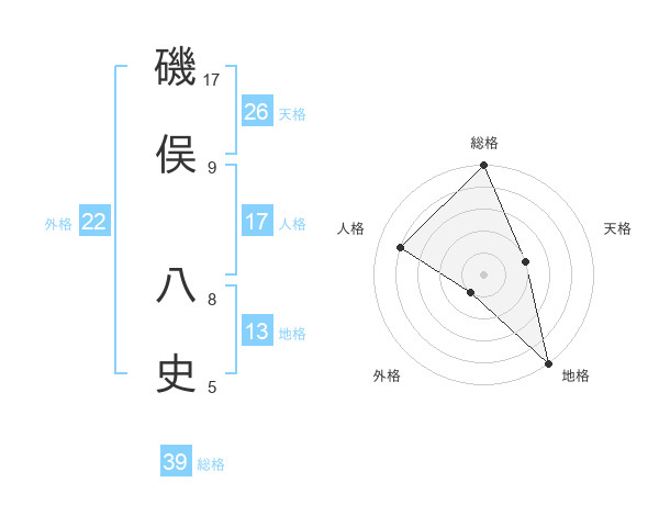 磯俣 八史さんの天格は26画の2点!