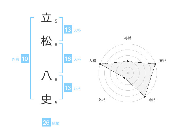 立松 八史さんの天格は13画の5点!