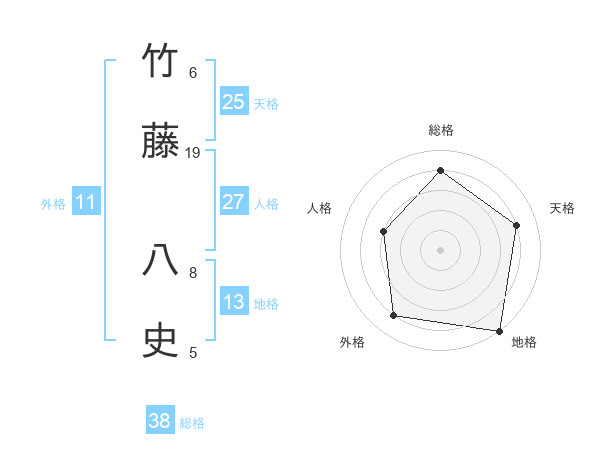 竹藤 八史さんを姓名の画数から五運を鑑定