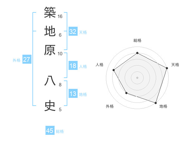 築地原 八史さんの総格は45画の4点!