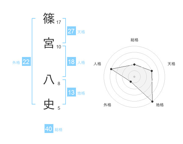 篠宮 八史さんの外格は22画の1点!