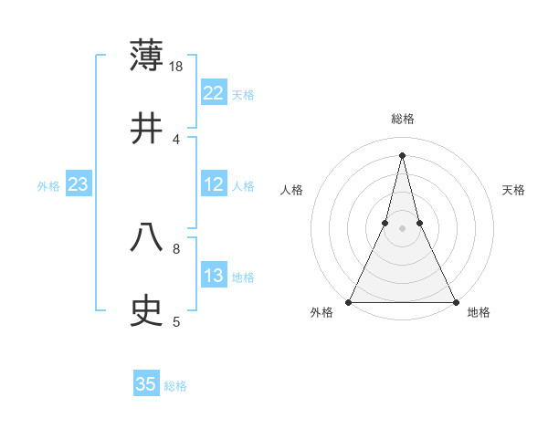 薄井 八史さんの総格は35画の4点!
