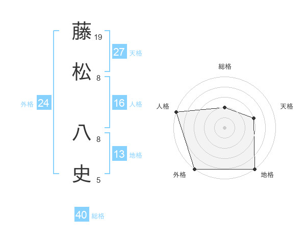 藤松 八史さんの外格は24画の5点!