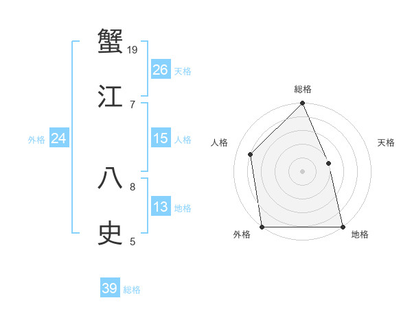 蟹江 八史さんの総格は39画の5点!