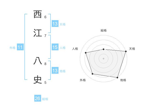 西江 八史さんの天格は13画の5点!