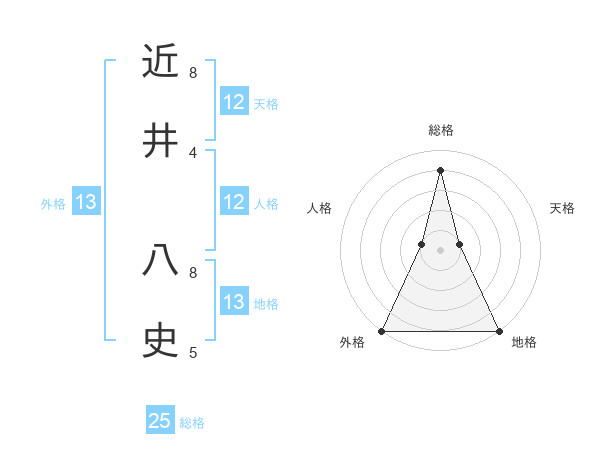 近井 八史さんの外格は13画の5点!