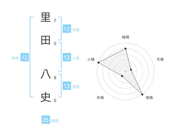 占い結果は姓名判断である以上、良い場合も悪い場合もありますが、決してお名前を誹謗中傷するものでなく、画数の自動計算によって得られたものです。また、本サイトの検索によって得られた鑑定結果で、第三者を誹謗中傷したり名誉を棄損するような行為を禁じます。