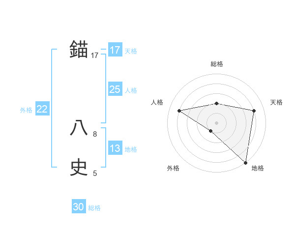 錨 八史さんの地格は13画の5点!