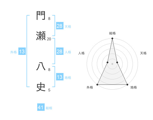 門瀬 八史さんの外格は13画の5点!