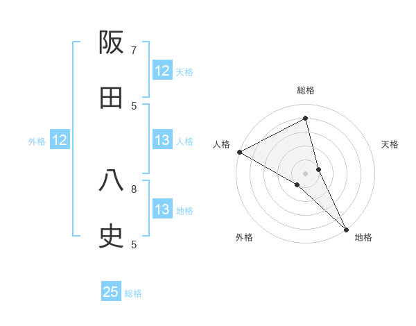 阪田 八史さんの地格は13画の5点!