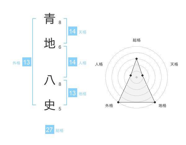 青地 八史さんの外格は13画の5点!