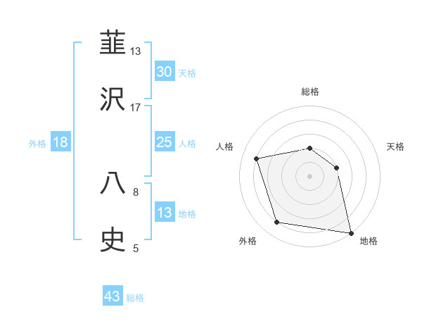 韮沢 八史さんの総格は43画の2点!