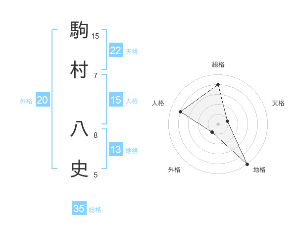 駒村 八史さんの総格は35画の4点!
