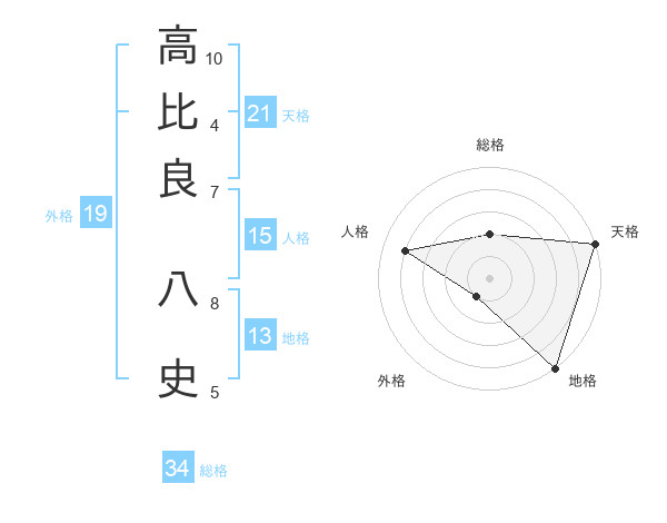 高比良 八史さんの天格は21画の5点!