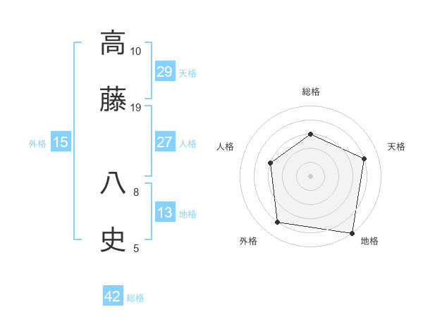 高藤 八史さんの天格は29画の4点!