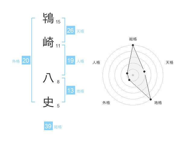 鴇崎 八史さんを姓名の画数から五運を鑑定
