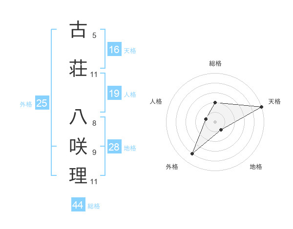 古荘 八咲理さんを姓名の画数から五運を鑑定