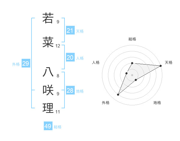 若菜 八咲理さんを姓名の画数から五運を鑑定