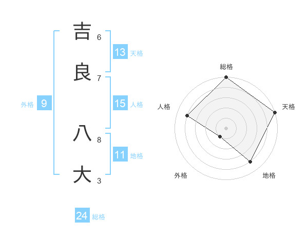 吉良 八大さんの総格は24画の5点!