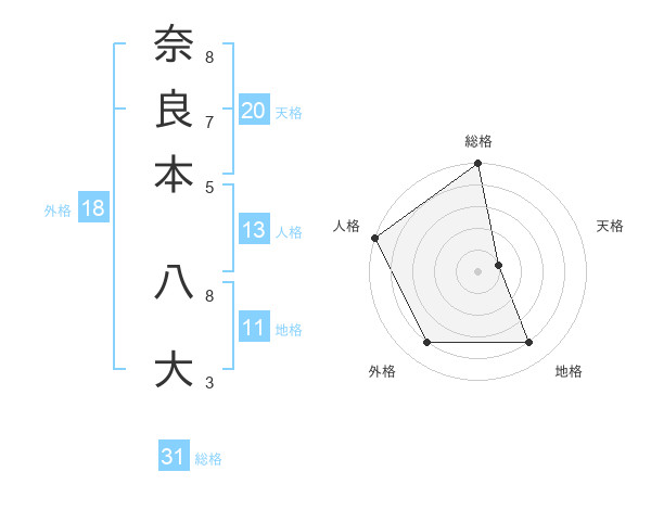 奈良本 八大さんの総格は31画の5点!