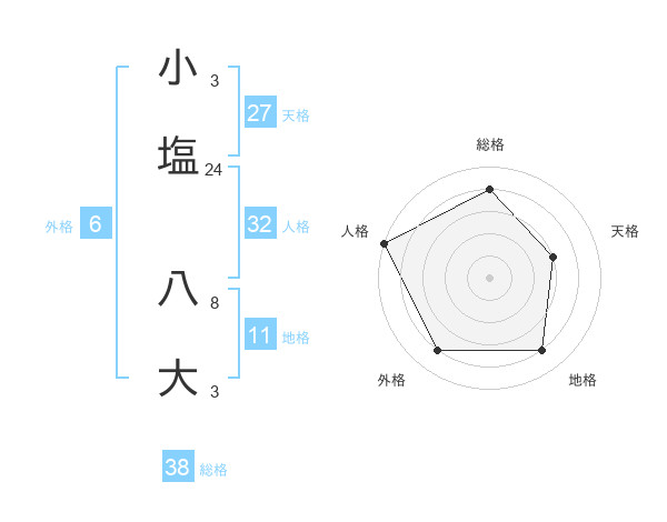 小塩 八大さんの総格は38画の4点!