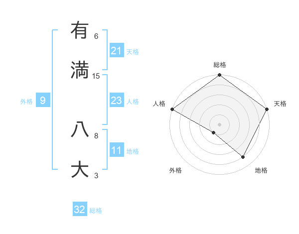 有満 八大さんの総格は32画の5点!
