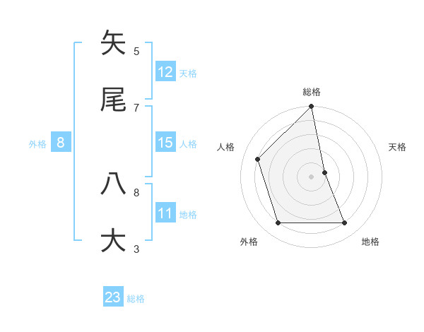 矢尾 八大さんの総格は23画の5点!