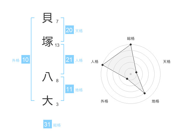 貝塚 八大さんの総格は31画の5点!