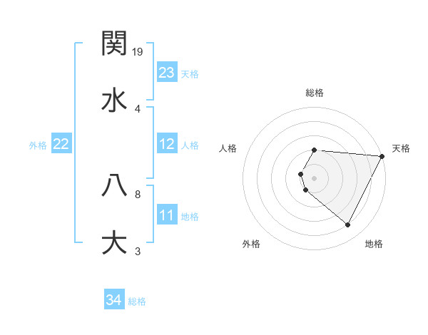 関水 八大さんの天格は23画の5点!