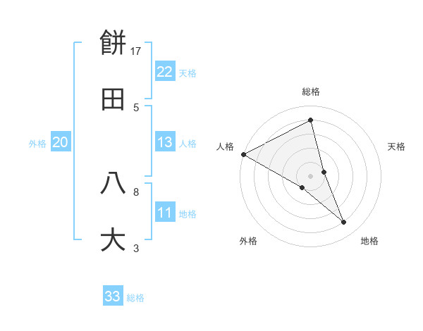 餅田 八大さんの総格は33画の4点!