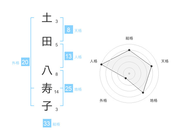 土田 八寿子さんを姓名の画数から五運を鑑定