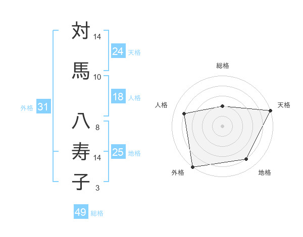対馬 八寿子さんの天格は24画の5点!