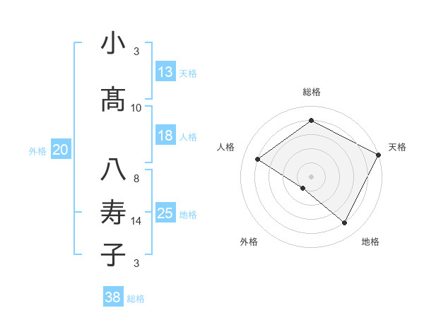 小髙 八寿子さんの総格は38画の4点!