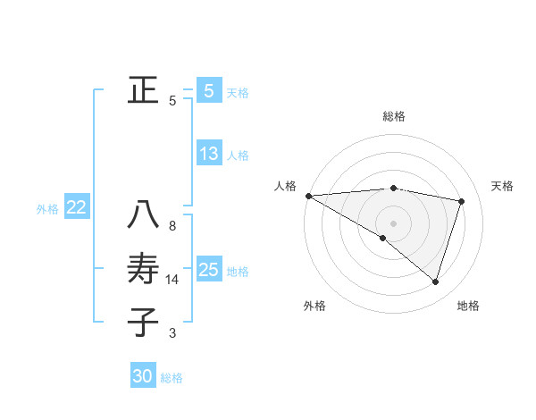 正 八寿子さんの総格は30画の2点