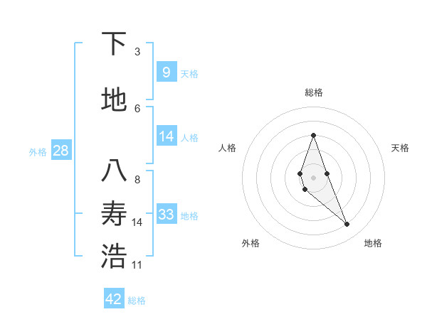 下地 八寿浩さんを姓名の画数から五運を鑑定