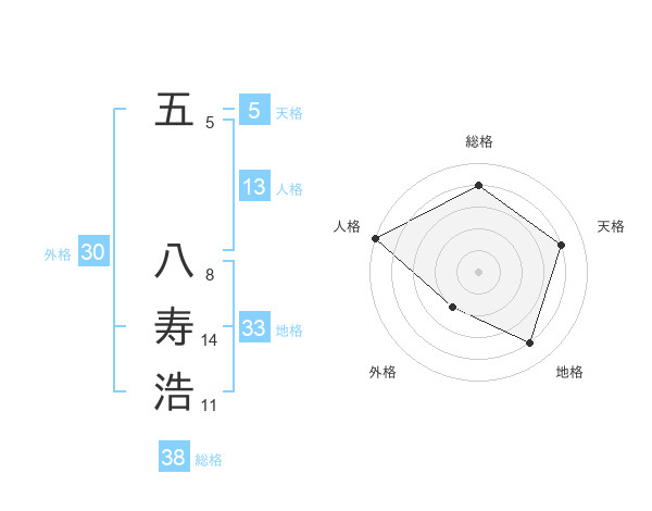 五 八寿浩さんの総格は38画の4点!