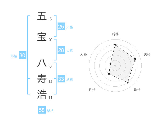 五宝 八寿浩さんを姓名の画数から五運を鑑定