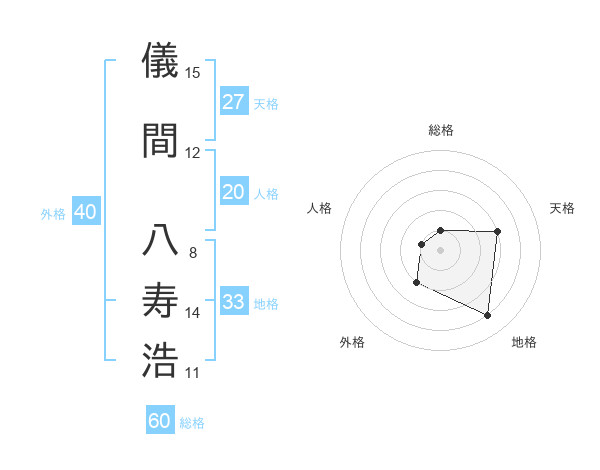 儀間 八寿浩さんを姓名の画数から五運を鑑定