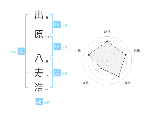 出原 八寿浩さんの天格は15画の4点!