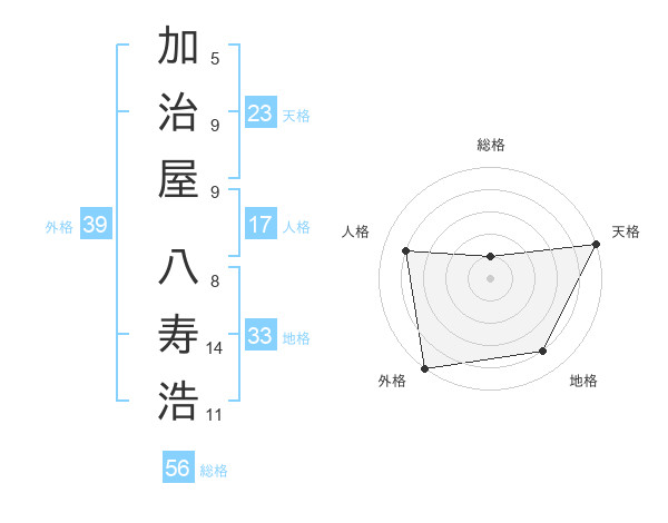 加治屋 八寿浩さんを姓名の画数から五運を鑑定