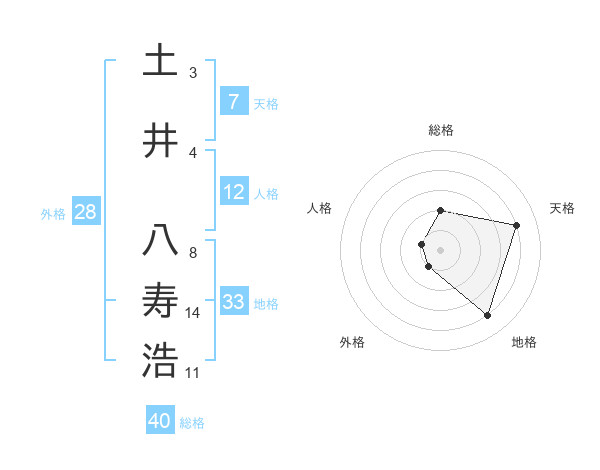 土井 八寿浩さんを姓名の画数から五運を鑑定